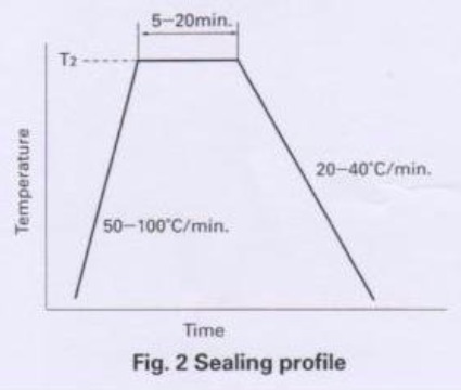 Sealing is carried out in a nitrogen atmosphere. Sealing temperature should be applied to the temperature T2 in the property table on grade sheet.