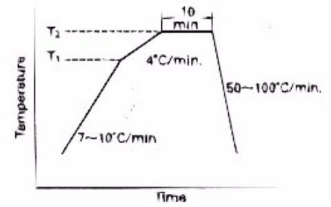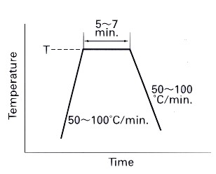 Sealing is carried out in either an air or a nitrogen atmosphere. Soak time is approximately 10 minutes and temperature is the same as lead-frame attaching temperature. Heating up rate is 50 to 100℃/min. and cool down rate is 20 to 40℃/min.